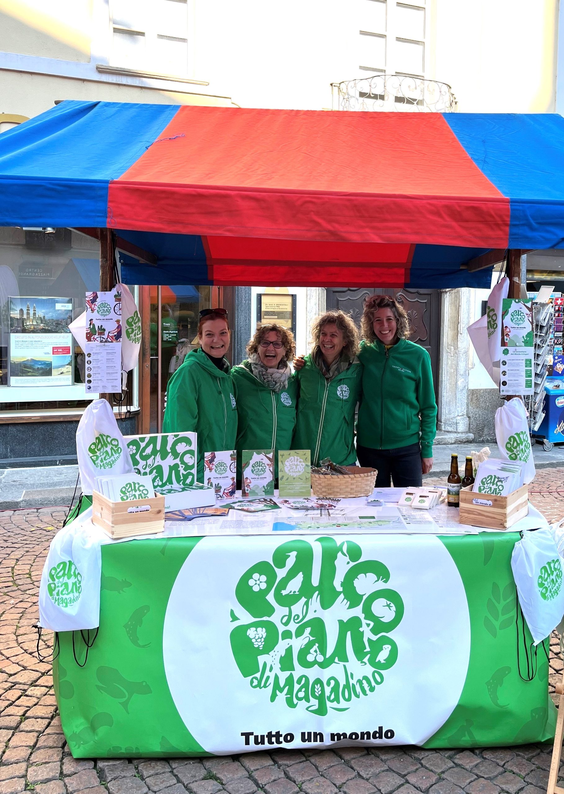 Le guide del Parco del Piano presentano la Fondazione al mercato cittadino di Bellinzona: valori, missione, attività, gite e pedalate.